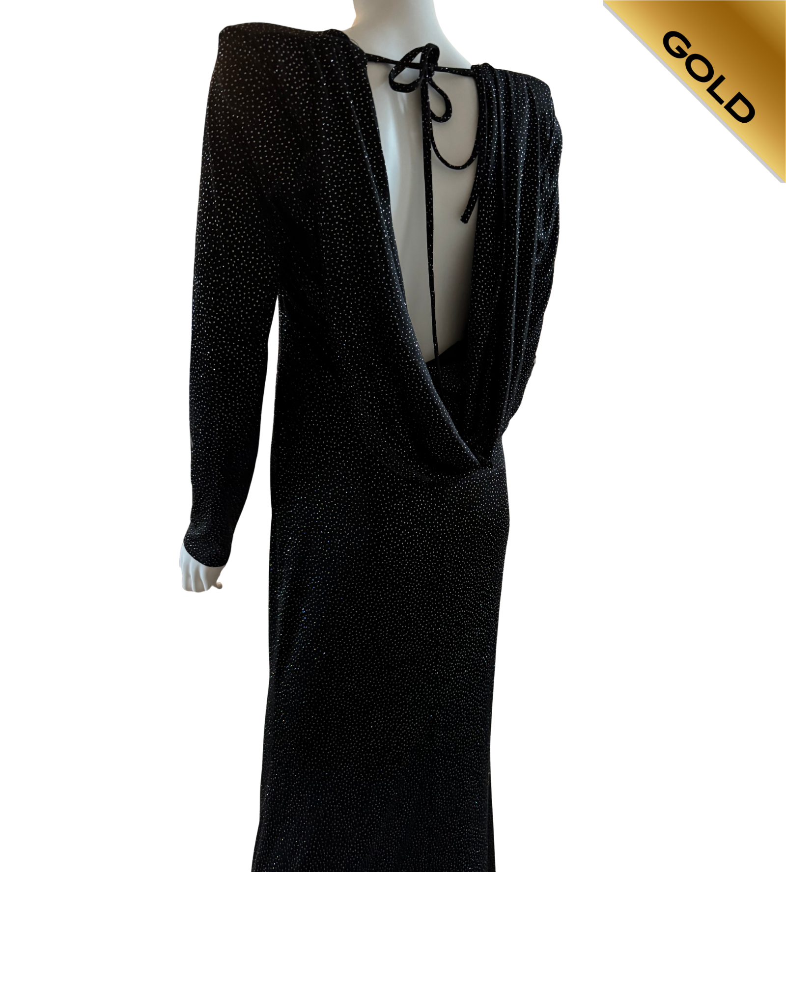 This Jessica Wright by Sistaglam sequin dress features structured shoulder pads that add definition. The loose back design offers comfort and effortless style, complemented by a simple tie at the back for easy adjustment and a flattering silhouette. Perfect for making a statement without sacrificing wearability.