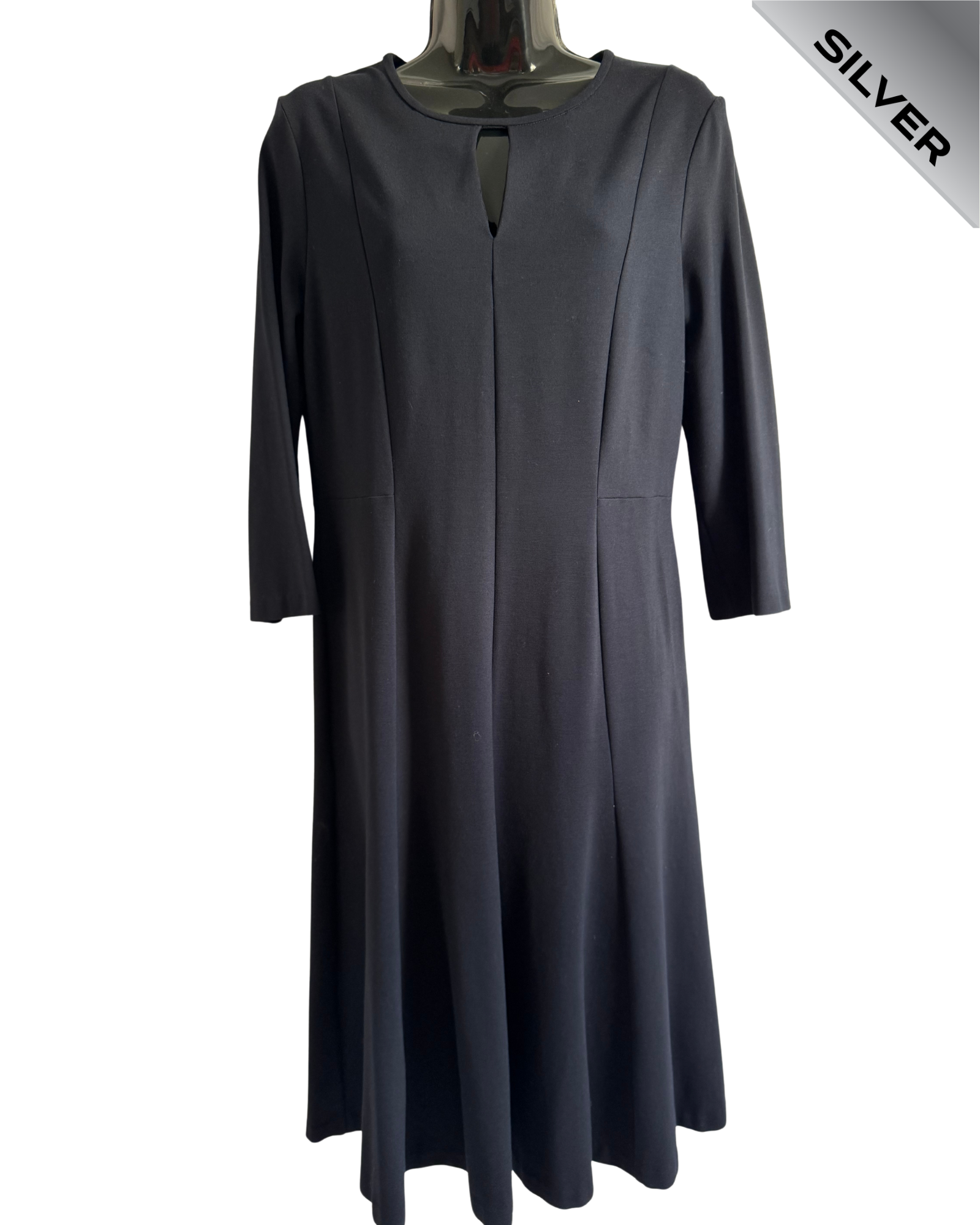 This L.K.BENNETT navy dress features a flattering fit and flare silhouette crafted from soft, breathable jersey fabric. Its tailored bodice and gently flared skirt offer both comfort and elegance, making it ideal for professional settings or sophisticated occasions. The rich navy hue adds a timeless touch, enhancing versatility and style. Designed for a refined fit, this dress combines classic tailoring with modern ease.