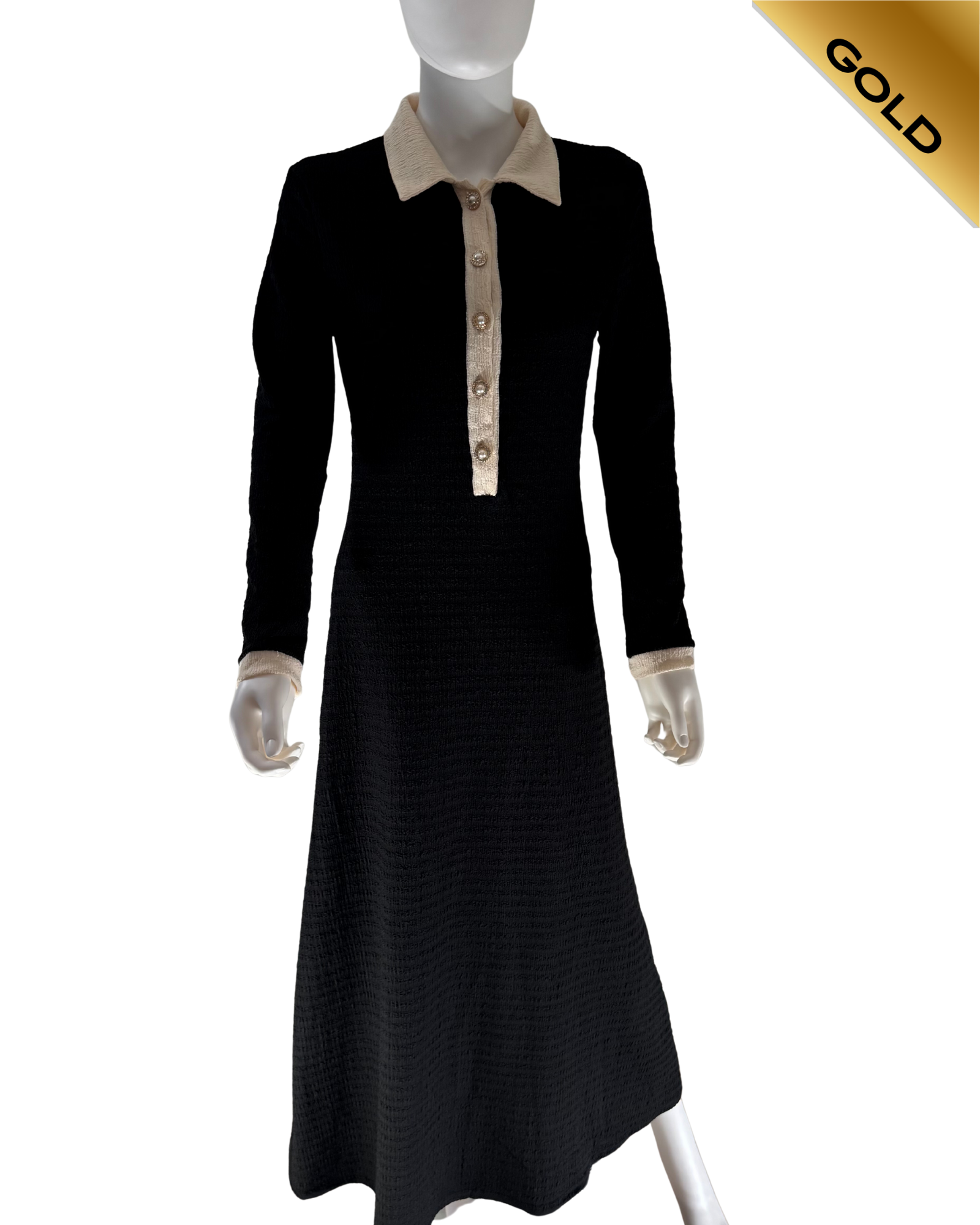 The River Island Button Detail Long Dress features a sophisticated contrast collar and cuffs that add a distinct, polished edge to its classic silhouette. This design detail enhances the dress's visual appeal while maintaining a refined look suitable for both professional and social settings. Crafted with attention to detail, the contrasting elements highlight your style with subtle yet impactful elegance.